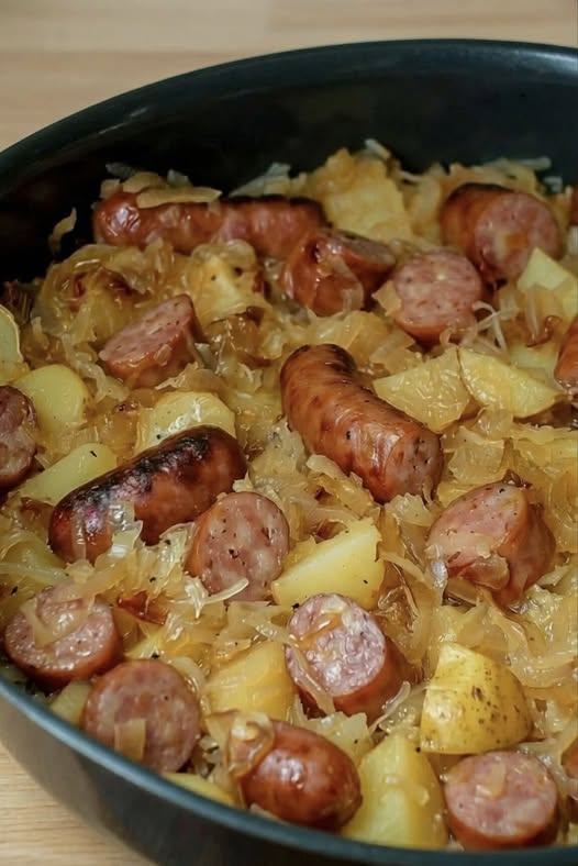 This Polish Sausage, Sauerkraut, and Potatoes is a timeless Eastern European comfort meal built on bold yet simple ingredients. As it cooks slowly, the sauerkraut forms a flavorful base that gently steams the potatoes, while the sausage releases its rich, smoky juices throughout the dish. A touch of caraway seeds brings a warm, earthy note that beautifully balances the sauerkraut’s natural tang.